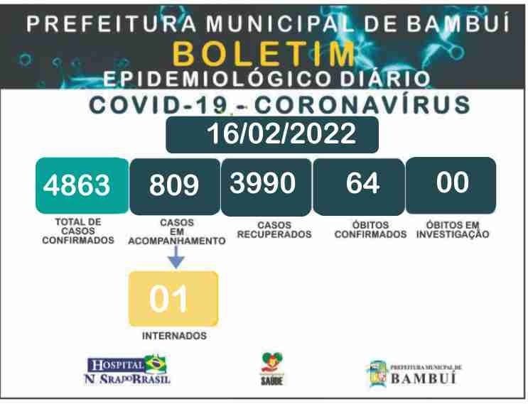 De acordo com o boletim divulgado em 03/01/2022, o município estava com 2.318 confirmados, 2.113 recuperados e 56 óbitos. Agora em 16/02/2022, após uma nova onda da pandemia, o município está com 4.863 confirmados, 3.990 recuperados e 64 óbitos.