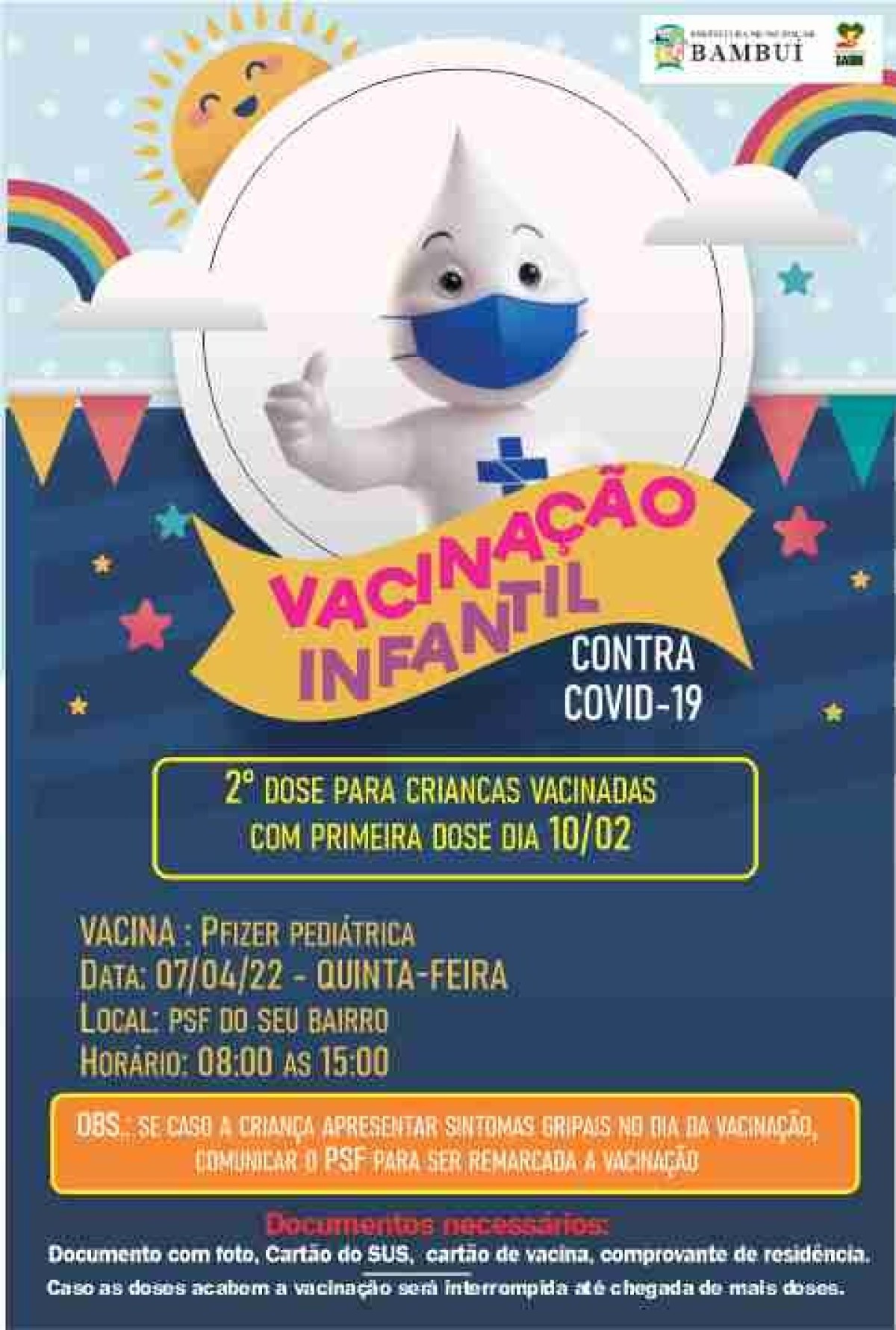 Caso a criança apresente sintomas gripais comunicar na UBS para que seja marcado um outro dia para a vacinação.