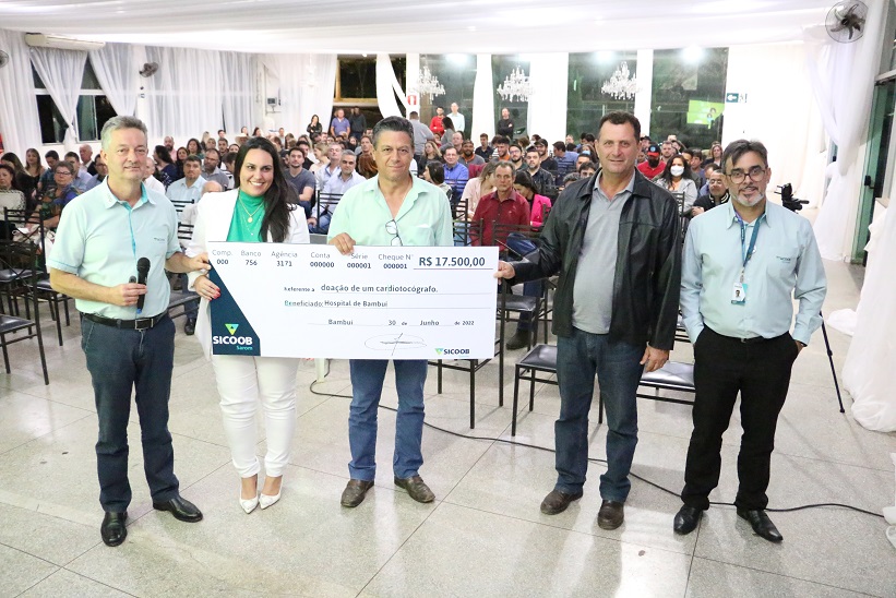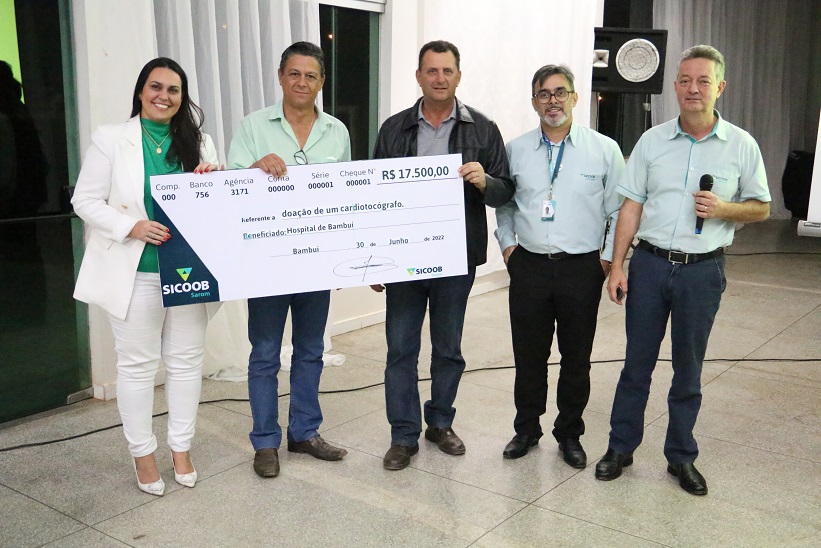 Sicoob Sarom movimenta o cooperativismo e entrega cheque simbólico para o Hospital Nossa Senhora do Brasil em Bambuí