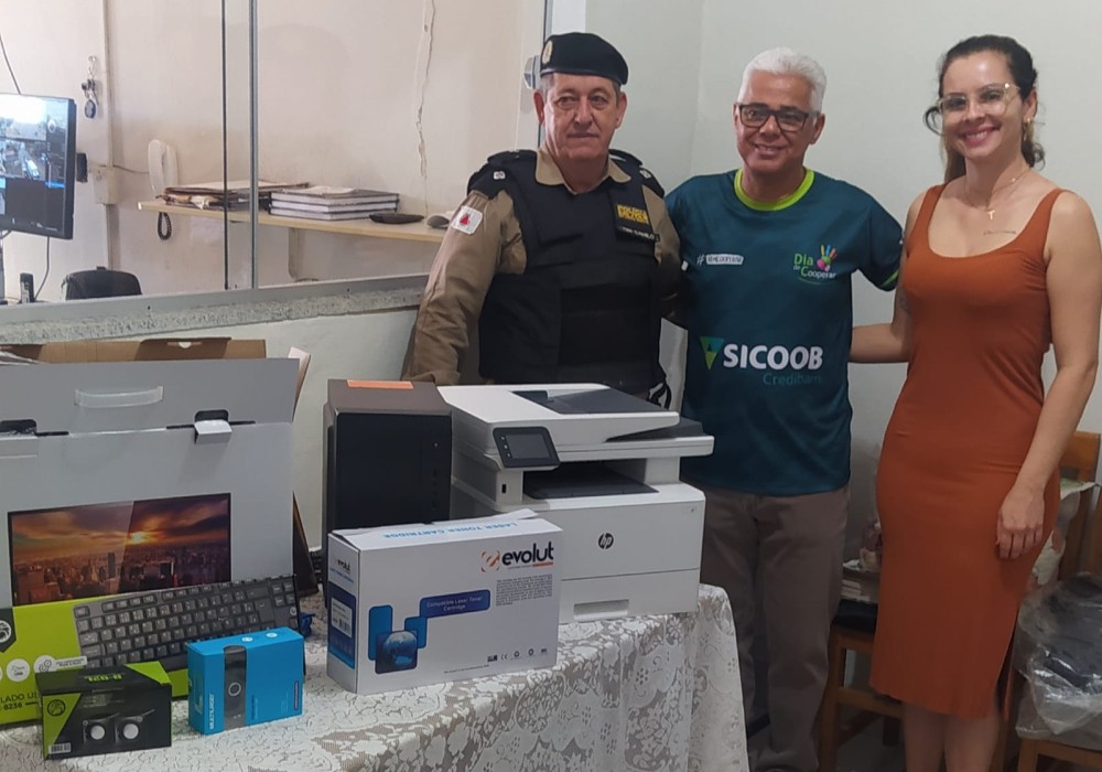 A Polícia Militar de Bambuí/MG recebeu na última quinta-feira (20) a doação de um computador completo e uma impressora entregues pelo Sicoob Credibam.