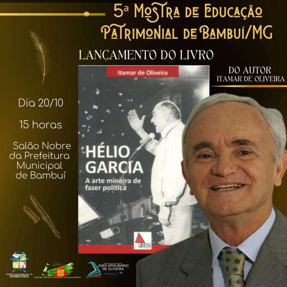 A Prefeitura de Bambuí realiza a 5ª Mostra de Educação Patrimonial com o lançamento do livro de Itamar de Oliveira, Hélio Garcia A arte mineira de fazer política. O evento acontecerá às 15h no Salão Nobre da Prefeitura.