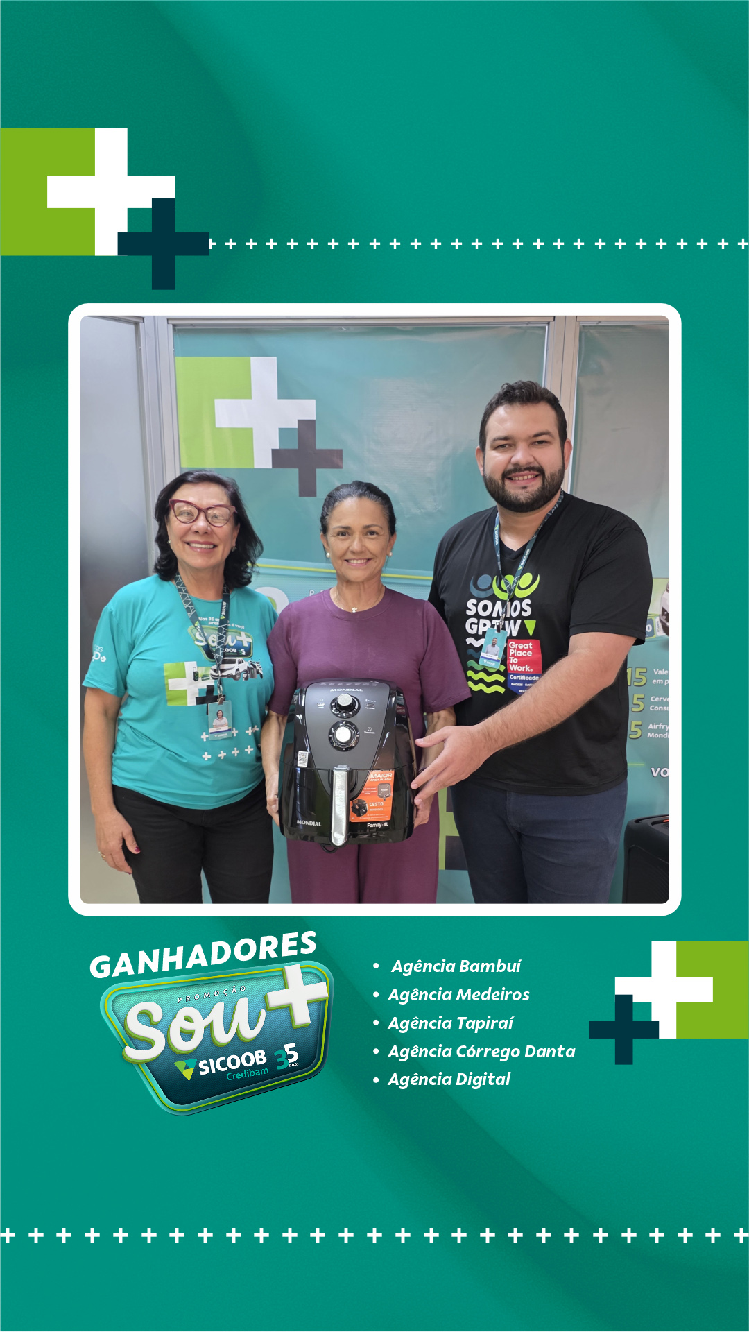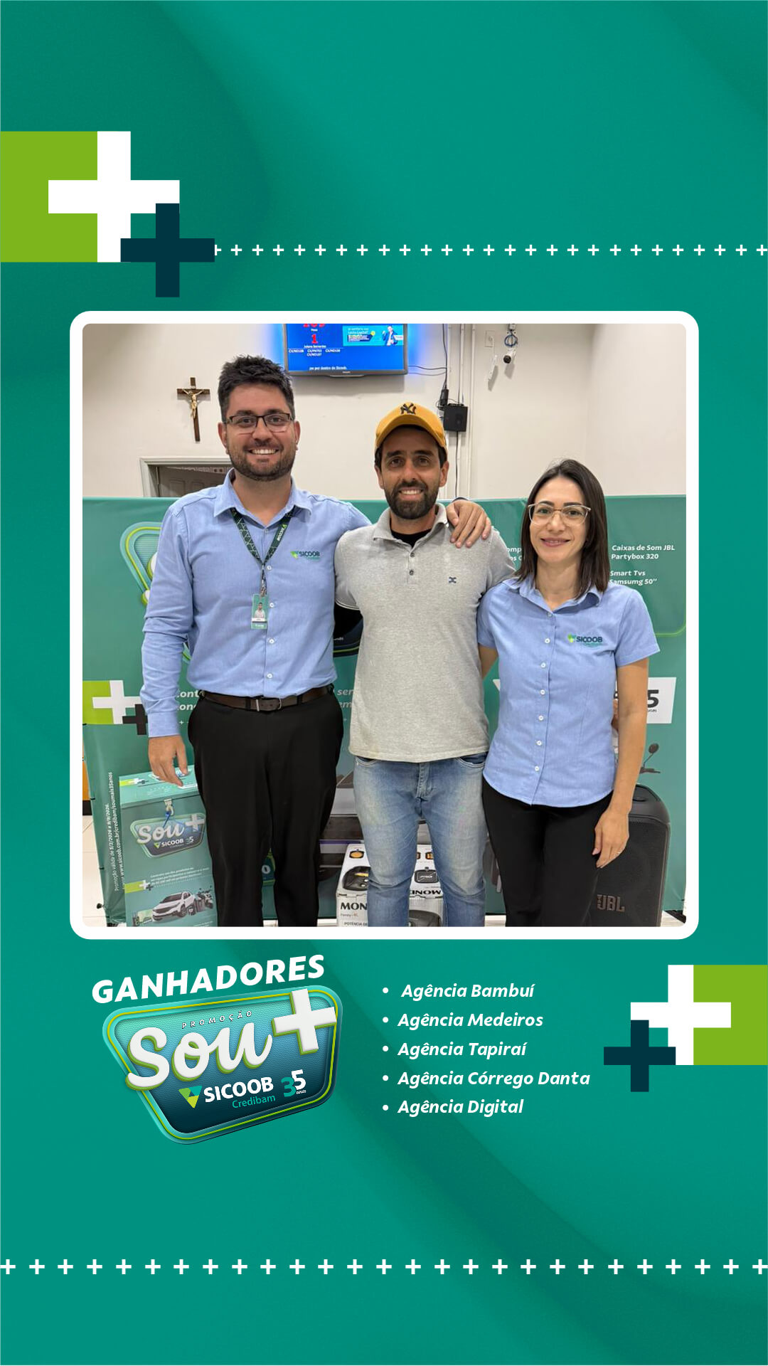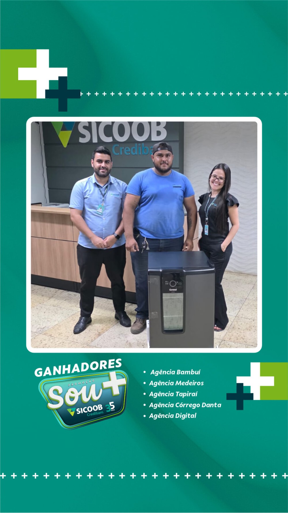 Neste primeiro sorteio, foram premiados cooperados das cidades de atuação da cooperativa: Bambuí, Medeiros, Tapiraí e Córrego Danta, além de participantes vinculados à Agência Digital. A entrega dos prêmios foi realizada diretamente pelas equipes das unidades, nos respectivos municípios.